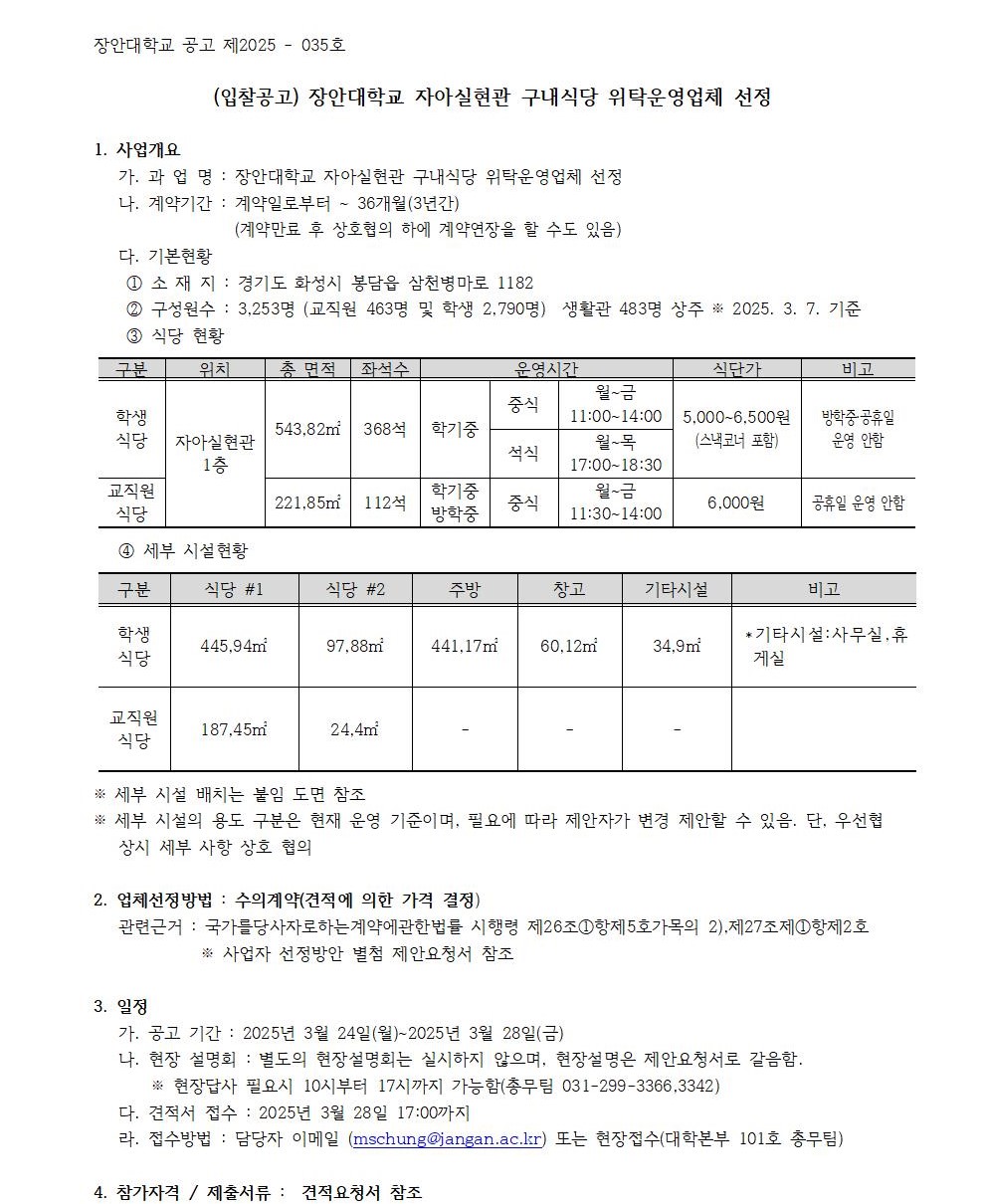 (수의계약)자아실현관 구내식당 위탁운영업체 선정 (긴급)